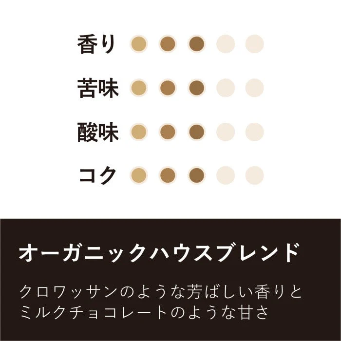 原材料名:有機コーヒー豆(生豆生産国名:ホンジュラス・ブラジル・ペルー・エチオピア・メキシコ)
